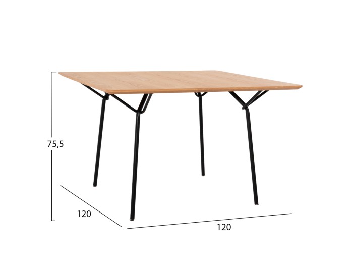 Το TRENK είναι ένα τετράγωνο τραπέζι για την τραπεζαρία, με φαλτσοκομμένη επιφάνεια από MDF με καπλαμά δρυός σε ΦΥΣΙΚΟ χρώμα ΔΡΥΟΣ. Η επιφάνεια αυτή στηρίζεται σε μεταλλικά ΜΑΥΡΑ πόδια. Ένα τραπέζι που θα τραβήξει τα βλέμματα και θα αναβαθμίσει αισθητικά κάθε τραπεζαρία ή χώρο εστίασης, χάρη στο μοντέρνο design του.