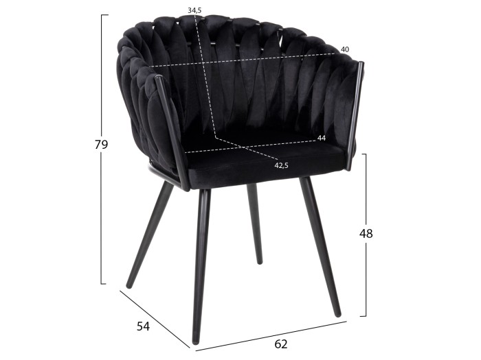 Το LUANDA είναι ένα πολυθρονάκι με ΜΑΥΡΟ βελούδινο ύφασμα και ΜΑΥΡΑ μεταλλικά πόδια, που έχει όλα όσα θα θέλατε από ένα τέτοιο έπιπλο. Διαθέτει ημικυκλική πλάτη, ενώ η πλάτη αποτελείται από φαρδύ αφρώδες σχοινί πλεγμένο επάνω στον μεταλλικό σκελετό και το σίγουρο είναι ότι θα αποτελέσει το κέντρο του ενδιαφέροντος όπου κι αν τοποθετηθεί.