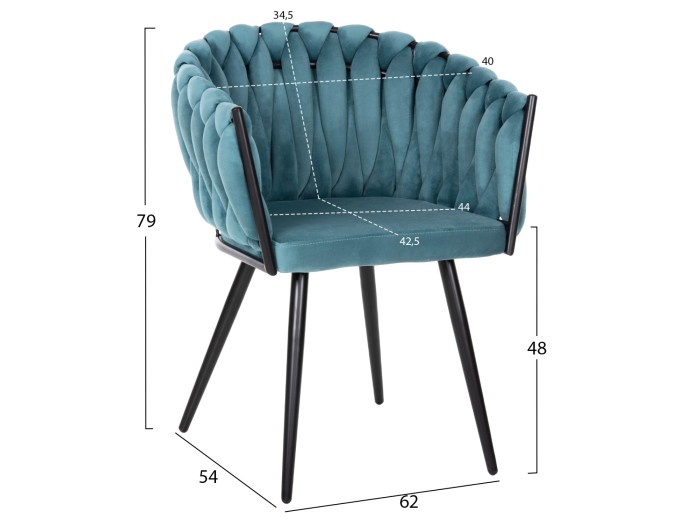 Το LUANDA είναι ένα πολυθρονάκι με ΤΙΡΚΟΥΑΖ βελούδινο ύφασμα και ΜΑΥΡΑ μεταλλικά πόδια, που έχει όλα όσα θα θέλατε από ένα τέτοιο έπιπλο. Διαθέτει ημικυκλική πλάτη, ενώ η πλάτη αποτελείται από φαρδύ αφρώδες σχοινί πλεγμένο επάνω στον μεταλλικό σκελετό και το σίγουρο είναι ότι θα αποτελέσει το κέντρο του ενδιαφέροντος όπου κι αν τοποθετηθεί.