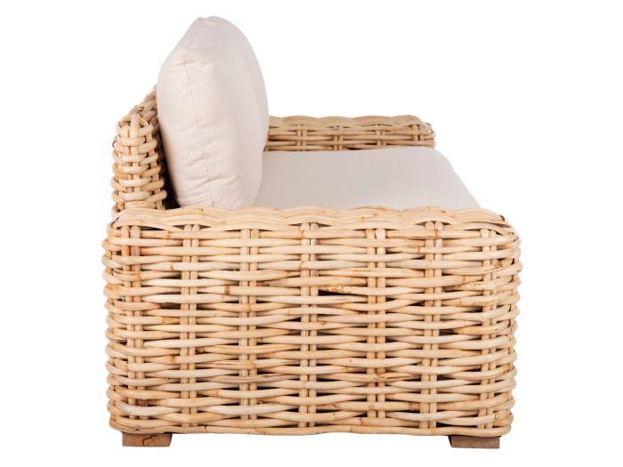 Η επένδυση του καναπέ έχει γίνει με φυσικό Rattan. Το Rattan είναι το καλύτερο και το πιο ευρέως χρησιμοποιούμενο φυσικό υλικό για διάφορες κατασκευές. Το Rattan που καλλιεργείται στην Ν.Α. Ασία είναι το ποιοτικότερο και ανθεκτικότερο υλικό από παρόμοια που καλλιεργούνται σε άλλες περιοχές. Με περισσότερα από 600 διαφορετικά είδη, το RATTAN μπορεί να διακριθεί ως ένα ισχυρό ινώδες φυτό που μοιάζει με το μπαμπού και χρησιμοποιείται για ευρέως επειδή είναι ελαφρύ, ανθεκτικό, εύκαμπτο και ελκυστικό.