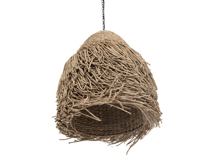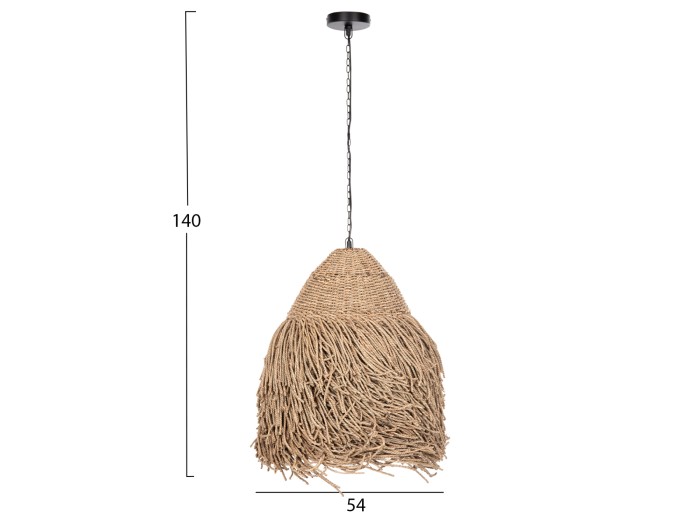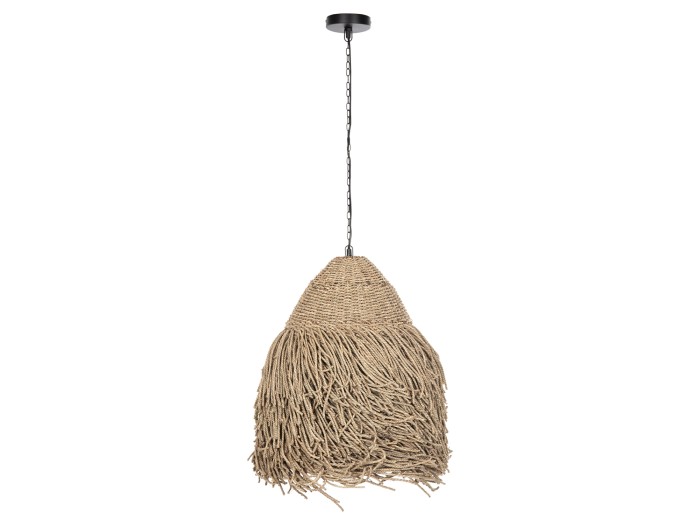 Αν επιθυμείτε να διακοσμήσετε το χώρο σας με ένα φωτιστικό σε boho στυλ, αυτό το φωτιστικό που είναι μια από τις νέες προσθήκες στην γκάμα μας είναι μια ασφαλής επιλογή. Πρόκειται για ένα μονόφωτο φωτιστικό με «καπέλο» σε σχήμα καμπάνας φτιαγμένο από αποξηραμένα seagrass, σε φυσικό χρώμα. Το χαρακτηριστικό, όμως αυτού του φωτιστικού είναι ότι διαθέτει πολύ μεγάλα κρόσια και λευκή αλυσίδα κρέμασης που δίνουν μια διαφορετική όψη σε σχέση με άλλα παρόμοια φωτιστικά.