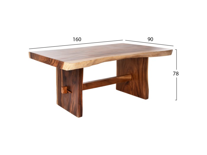 Το τραπέζι είναι κατασκευασμένο από μασίφ ξύλο SUAR. Το μασίφ συνιστά ένα είδος ξύλου, καθαρό και ατόφιο, που παραδοσιακά χρησιμοποιούν οι μαραγκοί για την κατασκευή επίπλων. Το μασίφ είναι η πιο ακριβή επιλογή σε είδος ξύλου αλλά ξεχωρίζει για την διαχρονική αισθητική του. Το αποτέλεσμα που προσφέρει στον κάτοχό του είναι πραγματικά μοναδικό.