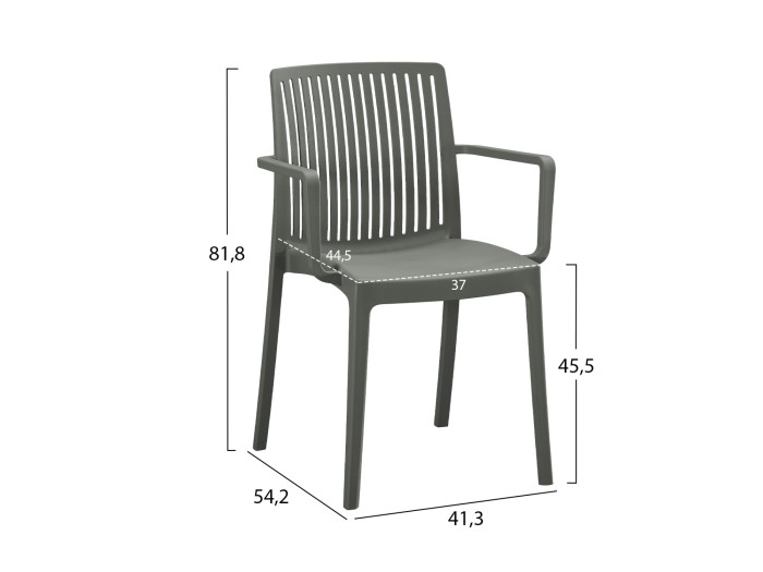 Η πολυθρόνα πολυπροπυλενίου IDA σε DARK OLIVE χρώμα είναι νέα προσθήκη στην γκάμα μας. Πρόκειται για ιδανική πρόταση για χρήση σε εξωτερικούς χώρους, είτε επαγγελματικούς (χώροι δεξιώσεων, εταιρείες catering, κλπ.) είτε για το σπίτι. Είναι ένα χυτό σύνολο καθίσματος-πλάτης-μπράτσων-ποδιών με ψηλά μπράτσα. Επίσης, η μεσαίου ύψους αεριζόμενη πλάτη και το κάθισμα είναι ικανοποιητικού μεγέθους και είναι σίγουρο ότι θα ικανοποιήσουν όλους όσοι καθίσουν σε αυτή την πολυθρόνα.