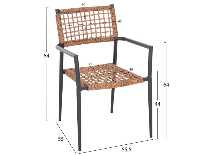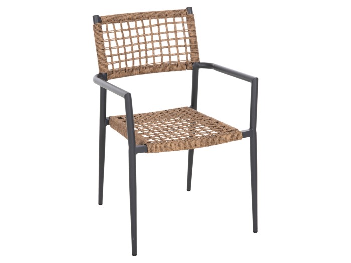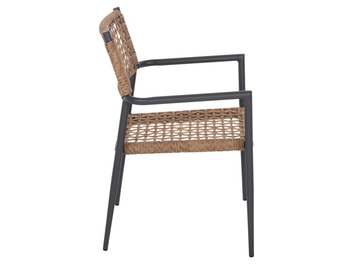 Η πολυθρόνα είναι επενδυμένη με πολυεστερικό RATTAN σε «τυλιχτή» μορφή (twisted) που μοιάζει με σχοινί.