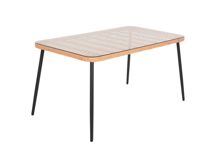 Το ορθογώνιο τραπέζι εξωτερικού χώρου της σειράς επίπλων ALLEGRA έχει ΜΑΥΡΟ μεταλλικό σκελετό με 4 πόδια. Το επάνω μέρος του σκελετού είναι επενδυμένο με συνθετικό Rattan σε ΜΠΕΖ(φυσικό) χρώμα και στρογγυλεμένες γωνίες, έτσι ώστε να τοποθετηθεί το γυαλί ασφαλείας της επιφάνειας. Ένα κλασικό, πια, σχέδιο που μπορείτε να το ταιριάξετε με πολλές διαφορετικές καρέκλες ή πολυθρόνες, είτε ίδιας είτε διαφορετικής φιλοσοφίας.