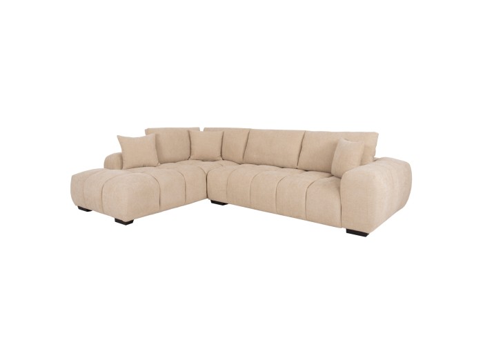 Σας παρουσιάζουμε τον COVEN, έναν υπέροχο μεγάλο καναπέ σε διαμόρφωση ΑΡΙΣΤΕΡΗΣ γωνίας (όπως τον κοιτάς) επενδυμένο με ποιοτικό ύφασμα σε ΕΚΡΟΥ χρώμα. Ξεκινώντας από το design, ο καναπές φτάνει μέχρι πολύ χαμηλά σε στυλ «ποδιάς» και διαθέτει φαρδιά χαμηλά πόδια-βάσεις σε μαύρο χρώμα. Τα μπράτσα είναι εντυπωσιακά φαρδιά, ενώ η επένδυση είναι σε στυλ καπιτονέ με τις έντονες ραφές! Το κομμάτι που σχηματίζει την γωνία είναι ίδιας αισθητικής και ενώνεται με τον κυρίως καναπέ με κατακόρυφους αναρτήρες πάνελ. Η πλάτη είναι χαμηλή και διαθέτει 4 μαξιλάρια πλάτης με «καραμέλες»(μακρόστενα κυλινδρικά μαξιλάρια) στο πίσω μέρος τους για καλύτερη στήριξη, αλλά και 3 μικρότερα διακοσμητικά μαξιλαράκια. Το κάθισμα διαθέτει γεμίσματα αφρού μεσαίας σκληρότητας σε συνδυασμό με ελατήρια pocket springs, προσφέροντας απαράμιλλη άνεση. Και φυσικά, σας προσφέρουμε αυτόν τον καναπέ με εγγύηση σκελετού 3 ετών!