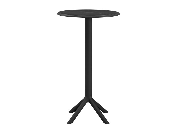 Το ψηλό τραπέζι για μπαρ πολυπροπυλενίου TERRIN σε ΜΑΥΡΟ χρώμα είναι η ιδανική πρόταση για χρήση σε εξωτερικούς χώρους, είτε επαγγελματικούς (κυρίως), είτε για το σπίτι. Το τραπέζι είναι στρογγυλό, ενώ η στήριξη γίνεται με μια κολώνα στο κέντρο που καταλήγει σε 4 πόδια («νύχια»).