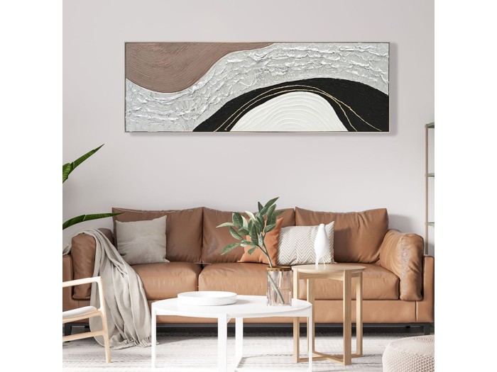 Ανάμεσα σε όλα τα διακοσμητικά στοιχεία, τα έργα τέχνης και ειδικά οι πίνακες ζωγραφικής παίζουν εξέχοντα ρόλο: όχι μόνο προσθέτουν χρώμα και αισθητική ομορφιά, αλλά δίνουν επίσης βάθος και νόημα στον χώρο μας. Ένας πίνακας μεταμορφώνει τον τρόπο που αντιλαμβανόμαστε έναν χώρο. Διακοσμήστε, λοιπόν, τον χώρο σας με έναν από τους καινούργιους πίνακες που προστέθηκαν στην γκάμα μας! Αυτός ο πίνακας απεικονίζει διάφορες υφές και χρώματα και είναι ζωγραφισμένος με το χέρι σε καμβά. Η κορνίζα είναι μπεζ από πολυστυρένιο.