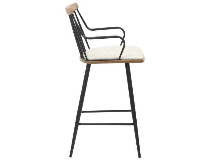 Το JUDI είναι ένα σκαμπό μεσαίου ύψους με πλάτη και μπράτσα για μπαρ. Τα πόδια είναι μεταλλικά σε ΜΑΥΡΗ απόχρωση όπως και το τετράγωνο υποπόδιο. Το κάθισμα είναι επενδυμένο με ΕΚΡΟΥ ύφασμα και διακρίνεται από την άνεση που προσφέρει. Ωστόσο, αυτό που ξεχωρίζει είναι η πλάτη που αποτελείται από μεταλλικές ράβδους σε ΜΑΥΡΟ χρώμα όπως επίσης και τα μπράτσα, που καθιστούν αυτό το σκαμπό ιδιαίτερα πρακτικό.