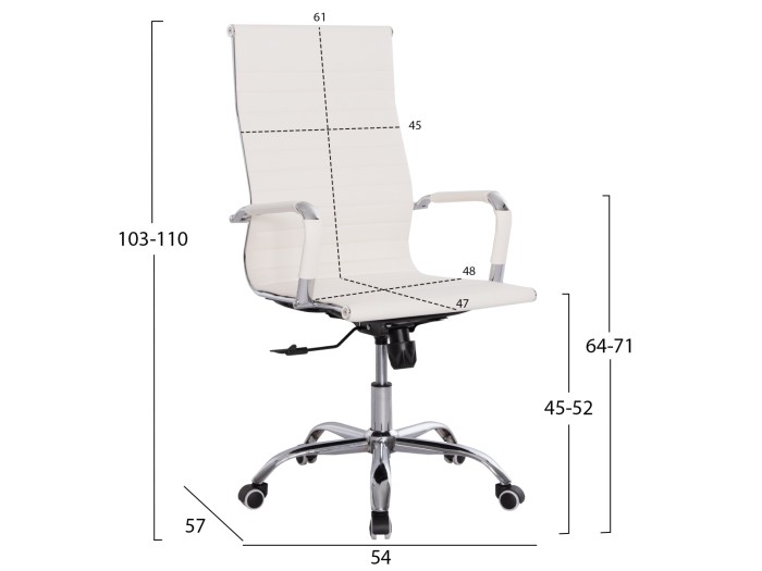 Η καρέκλα γραφείου BOSS θα τραβήξει όλα τα βλέμματα! Οι λεπτές μεταλλικές και ανατομικές καμπύλες της και ο συνδυασμός του ΛΕΥΚΟΥ PU δέρματος με τις οριζόντιες ραφές, με τα μεταλλικά χρωμιωμένα μέρη θα προκαλέσει τον θαυμασμό και μόνο. Τα μπράτσα είναι και αυτά ντυμένα με ΛΕΥΚΟ PU δέρμα, ενώ ακόμα και τα ροδάκια ακολουθούν το χρωματικό μοτίβο του μαύρου με το χρωμιωμένο μέταλλο. Η πλάτη είναι ψηλή και τετραγωνισμένη ενώ το κάθισμα είναι επίπεδο και φαρδύ ικανοποιώντας τον χρήστη. Η καρέκλα διαθέτει επίσης, τις βασικές ρυθμίσεις ύψους και ανάκλισης καθίσματος για να προσφέρει μια ολοκληρωμένη εμπειρία σε όποιον αποφασίσει να την επιλέξει.