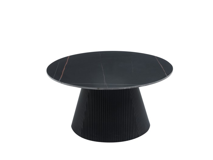 Το τραπέζι σαλονιού DUNCAN είναι στρογγυλό και χαμηλό σχετικά τραπέζι σε χρώμα ΜΑΥΡΟ. Η επίπεδη επιφάνειά του είναι κεραμική σε χρωματισμό ΜΑΥΡΟΥ ΜΑΡΜΑΡΟΥ μονταρισμένη σε mdf πάνελ, ενώ η βάση του είναι κωνική κατασκευασμένη εξολοκλήρου από mdf, με όμορφες πτυχώσεις.