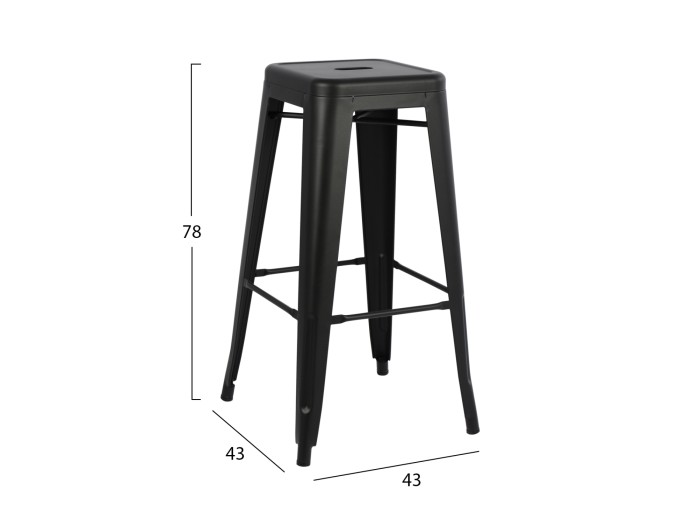 Σκαμπό Μπαρ MELITA-PRO σε τετράγωνη υλοποίηση, εξολοκλήρου μεταλλικό σε ΜΑΥΡΟ ΜΑΤ χρώμα. Σε μοντέρνο και λιτό design INDUSTRIAL, χωρίς μπράτσα και πλάτη, αποτελεί την τελευταία τάση στην κατηγορία του.