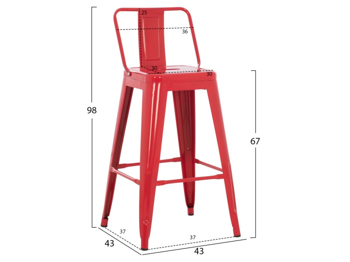 Σκαμπό Μπαρ μεσαίου ύψους με πλάτη MELITA-PRO σε τετράγωνη υλοποίηση, εξολοκλήρου μεταλλικό σε ΚΟΚΚΙΝΟ χρώμα. Σε μοντέρνο και λιτό design INDUSTRIAL με υποπόδιο, αποτελεί την τελευταία τάση στην κατηγορία του.