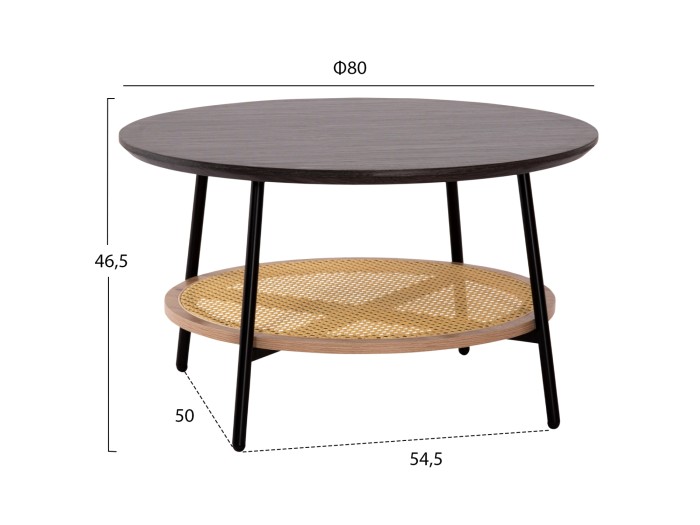 Το σετ 2τμχ SEWELL αποτελείται από δύο στρογγυλά τραπεζάκια, ένα σαλονιού κι ένα βοηθητικό, ίδιας αισθητικής. Διαθέτουν 2 επιφάνειες οι οποίες στηρίζονται σε ΜΑΥΡΑ μεταλλικά χιαστί πόδια. Οι επάνω επιφάνειες είναι από MDF φαλτσοκομμένο σε απόχρωση ZEBRANO, ενώ οι κάτω επιφάνειες είναι κατασκευασμένες από Rattan σε πλέξη wicker σε ΦΥΣΙΚΟ χρώμα. Ένα μοναδικό σετ που συνδυάζει πρακτικότητα και πολυτέλεια για τον χώρο σας.