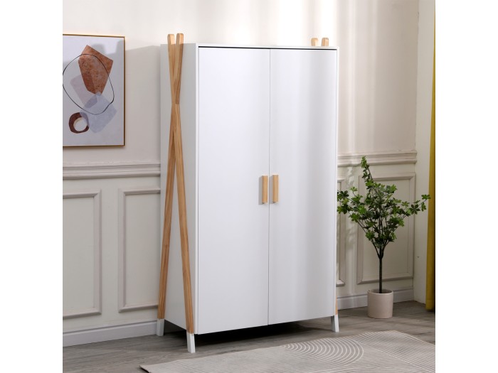 Σας παρουσιάζουμε την καινούργια παιδική (και όχι μόνο) ντουλάπα PASCHAL σε ΛΕΥΚΟ χρώμα. Είναι βολική σε διαστάσεις και διαθέτει 2 ράφια στο επάνω μέρος και μία μπάρα κρέμασης ρούχων από κάτω. Στηρίζεται σε δύο ξύλινα χιαστί πόδια σε ΦΥΣΙΚΟ χρώμα ξύλου στις δύο πλευρές. Είναι βαμμένο με αβλαβές βερνίκι με βάση το νερό και μη τοξικό, ιδανικό για παιδιά.
