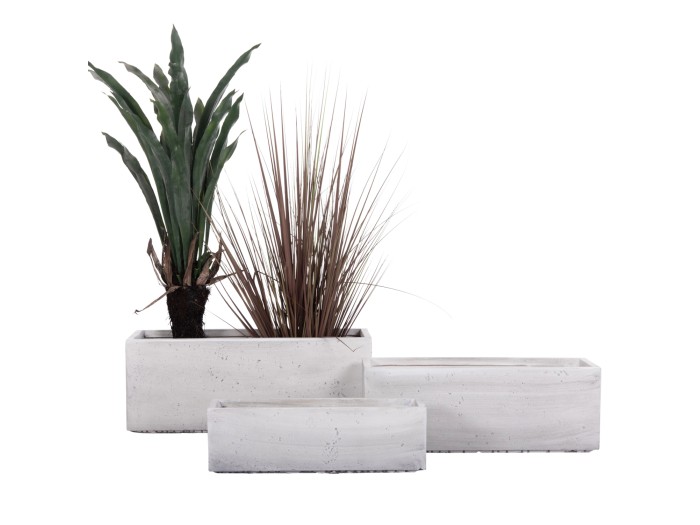 Σας παρουσιάζουμε την σειρά GARDENER που περιλαμβάνει σετ γλαστρών κατασκευασμένες από FiberClay και αποτελεί την τελευταία προσθήκη στην γκάμα μας. Αυτό το σετ αποτελείται από 3 ορθογώνιες γλάστρες σε διαφορετικά μεγέθη σε ΓΚΡΙ CEMENT χρώμα. Ιδανικές για εξωτερικούς χώρους.