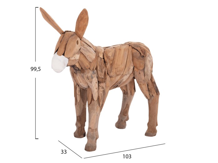 Σας παρουσιάζουμε το μοναδικό χειροποίητο διακοσμητικό γαιδουράκι- ρέπλικα υπό κλίμακα, που θα γίνει αντικείμενο θαυμασμού, όπου κι αν τοποθετηθεί! Κατασκευασμένο από ανακυκλωμένα κομμάτια ξύλου teak, θα καταπλήξει τους πάντες. Ένα τέτοιο δημιούργημα είναι προφανές ότι δεν μπορεί να παραχθεί σε μεγάλους αριθμούς με αποτέλεσμα να είναι πραγματικά προνόμιο να το έχεις στην κατοχή σου!