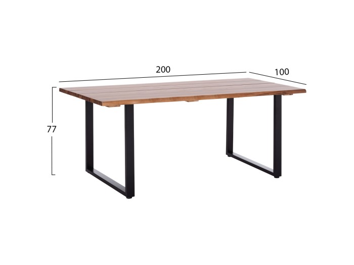Ανακαλύψτε το μοναδικό τραπέζι για εξωτερικούς χώρους FRIGGO με επιφάνεια από φυσικό μασίφ ξύλο ΑΚΑΚΙΑΣ σε ΦΥΣΙΚΟ χρώμα. To σχήμα είναι ορθογώνιο και στηρίζεται σε δύο μαύρες μεταλλικές βάσεις. Το μοντέρνο design συναντά την φύση και δίνει μια διαχρονική και ζεστή αίσθηση στον χώρο σας.