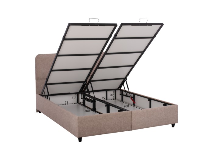 Ο σκελετός του κρεβατιού είναι ξύλινος, πράγμα που καθιστά το κρεβάτι εξαιρετικά στιβαρό και ανθεκτικό, χάρη και στην ενισχυμένη κατασκευή του. Ο μηχανισμός αποθήκευσης είναι μεταλλικός για αντοχή στο βάρος και στον χρόνο.