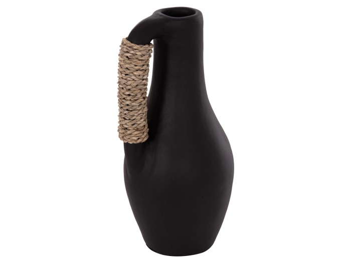 Το επιτραπέζιο χειροποίητο διακοσμητικό βάζο CAMMER είναι κατασκευασμένο εξολοκλήρου από τερακότα σε ΜΑΥΡΟ χρώμα ενώ διαθέτει διακοσμητική πλέξη από rattan στο χερούλι που διαθέτει. Ιδανικό για πληθώρα χώρων, τόσο για το σπίτι, όσο και για επαγγελματικούς χώρους.