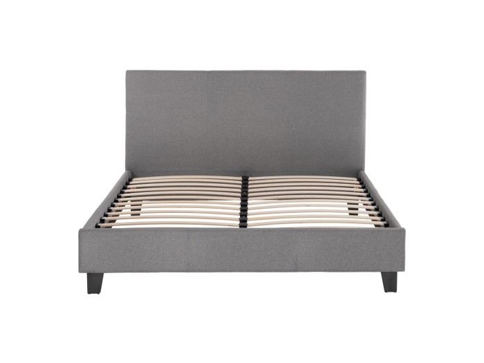 Το διπλό κρεβάτι BECCA είναι επενδυμένο με ποιοτικό ύφασμα σε ΓΚΡΙ χρώμα. Το στρώμα που συνοδεύει το κρεβάτι τοποθετείται σε δύο σειρές ανατομικές τάβλες, είναι διπλής όψης και είναι τεχνολογίας continuous spring. Τα πόδια είναι σχετικά ψηλά από πολυπροπυλένιο σε μαύρο χρώμα.