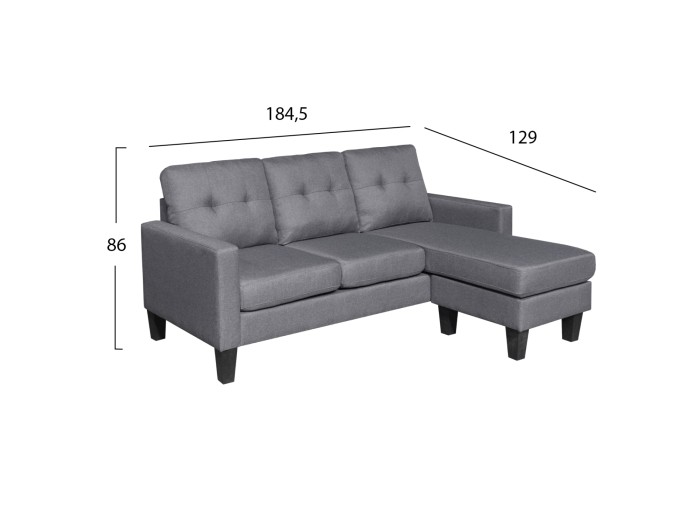 Hm3297.01- Καναπές Γωνία αναστρέψιμος, με επένδυση από ΓΚΡΙ ύφασμα, ενώ έχει ψηλά μαύρα πόδια. --- Διαστάσεις: 184,5x129x86Y εκ.