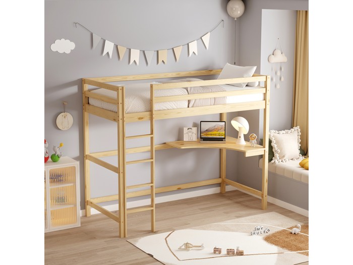 Η παιδική κουκέτα AKRON σε διάσταση για στρώμα 90x190εκ, είναι κατασκευασμένη από ξύλο πεύκου σε ΦΥΣΙΚΟ χρώμα. Η κουκέτα διαθέτει περιμετρικά κάγκελα και σκάλα πρόσβασης στο επάνω κρεβάτι και στο κάτω μέρος υπάρχει γωνιακό γραφείο, ενώ το στρώμα τοποθετείται σε τάβλες από κόντρα-πλακέ ξυλεία.
