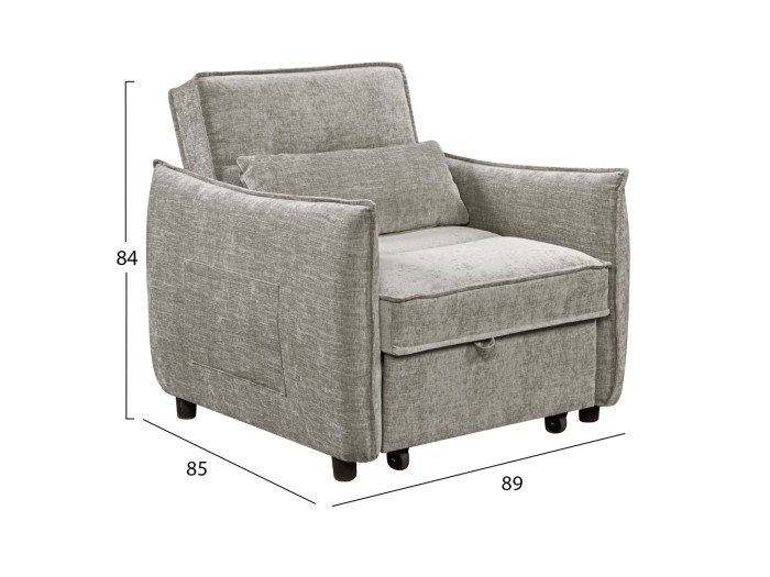 Λειτουργική πολυθρόνα-κρεβάτι με σύγχρονο σχεδιασμό, ιδανική για μικρούς χώρους και για χρήση ως καθημερινό κάθισμα ή έξτρα κρεβάτι φιλοξενίας.