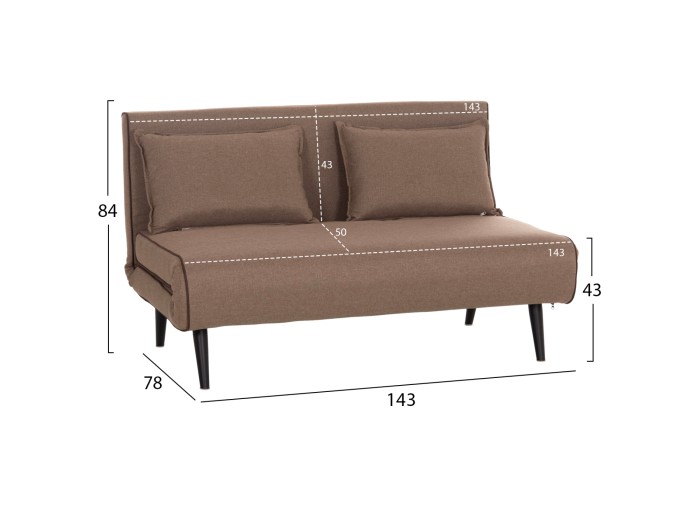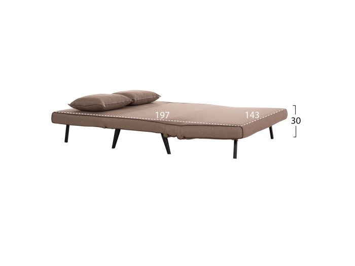 Ο ASMA είναι ένας καναπές κρεβάτι, διθέσιος, επενδυμένος με ποιοτικό ύφασμα σε ΣΚΟΥΡΟ ΜΠΕΖ χρώμα, και έχει ξύλινα πόδια σε μαύρη απόχρωση.