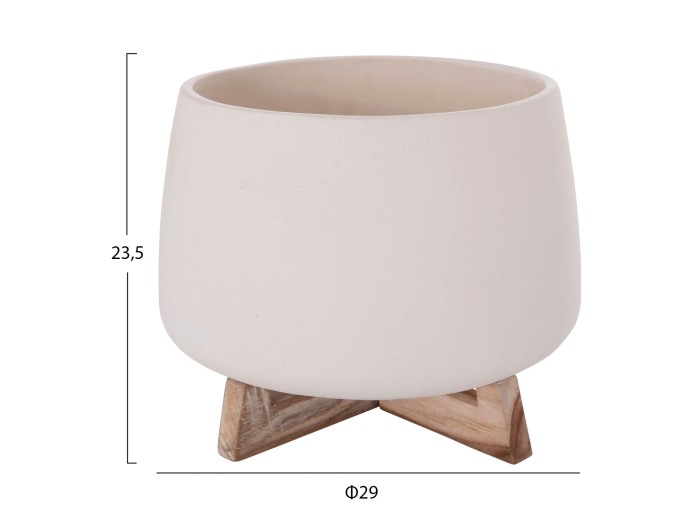 Η γλάστρα FRELLO είναι κατασκευασμένη από Fiber Cement σε ΛΕΥΚΟ χρώμα. Το ιδιαίτερο χαρακτηριστικό της είναι ότι συνοδεύεται από όμορφη και πρακτική βάση από ξύλο teak.
