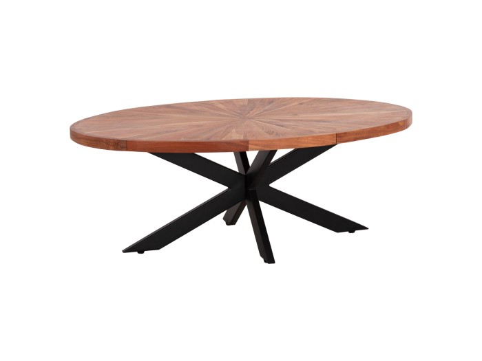 Ανακαλύψτε αυτό το μοναδικό οβάλ τραπέζι σαλονιού με επιφάνεια από φυσικό μασίφ ξύλο ΑΚΑΚΙΑΣ σε ΦΥΣΙΚΟ χρώμα. Διαθέτει πόδια σε όμορφη χιαστί διάταξη σε ΜΑΥΡΟ χρώμα. Το μοντέρνο design συναντά την φύση και δίνει μια διαχρονική και ζεστή αίσθηση στον χώρο σας, ενώ ταυτόχρονα αποτελεί κι ένα έπιπλο ανώτερης ποιότητας και συμβολισμού.