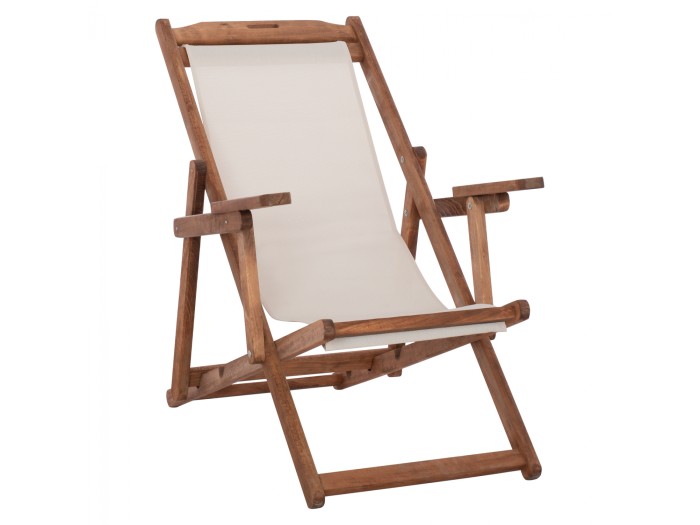 Σεζλόνγκ Λήμνος με μπράτσα σε καρυδί απόχρωση και pvc εκρου 62,5x97x105 εκ.
