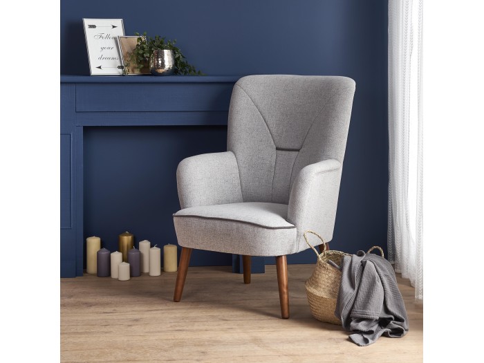 dimensions: 76/78/102/43 cm, material: cloth / solid wood, color: upholstery - light grey, legs - walnut