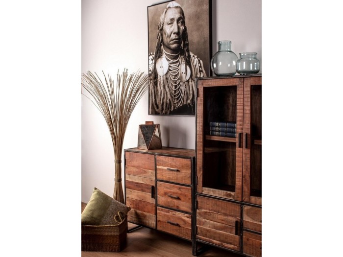 Ερμάριο κατασκευασμένο από ξύλο ακακίας και πλαίσιο από σίδερο. Διαθέτει ένα ντουλάπι και τρία συρτάρια.