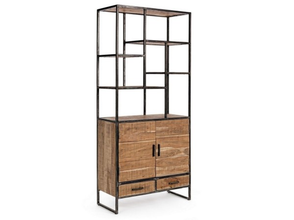 Βιβλιοθήκη από ξύλο ακακίας και πλαίσιο από σίδερο.