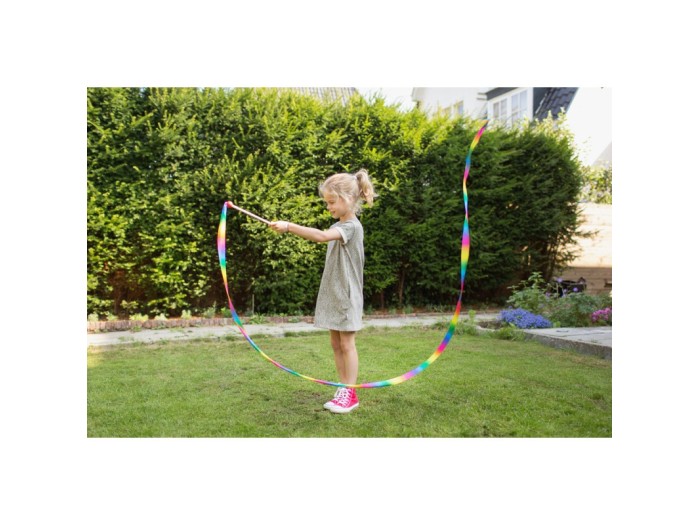 Πιάσε το ραβδί και γύρνα την κορδέλα στον αέρα! Απόλαυσε τα πανέμορφα χρώματα του ουράνιου τόξου!