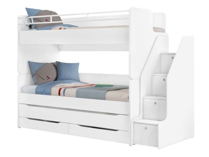 Με νέα πρόταση για την κουκέτα του δωματίου σας, με πολλές δυνατότητες, μπορείτε να την χωρίσετε σε 2 μονά κρεβάτια, η σκάλα με τα σκαλοπάτια, μπορεί να μπει από όποια πλευρά επιθυμείτε, αριστερά ή δεξιά, στο κάτω συρτάρι μπορεί να δημιουργηθεί και τρίτο κρεβάτι με την τοποθέτηση, ενός επιπλέον στρώματος, διαθέτει και συρτάρια για αποθηκευτικό χώρο.