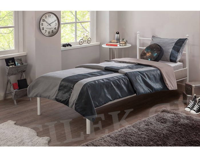 Διακοσμητικές πινελιές με την προσθήκη καλυμμάτων αποχρώσεων του γκρι και του μαύρου για να ταιριάζει απόλυτα με το θέμα του δωματίου.