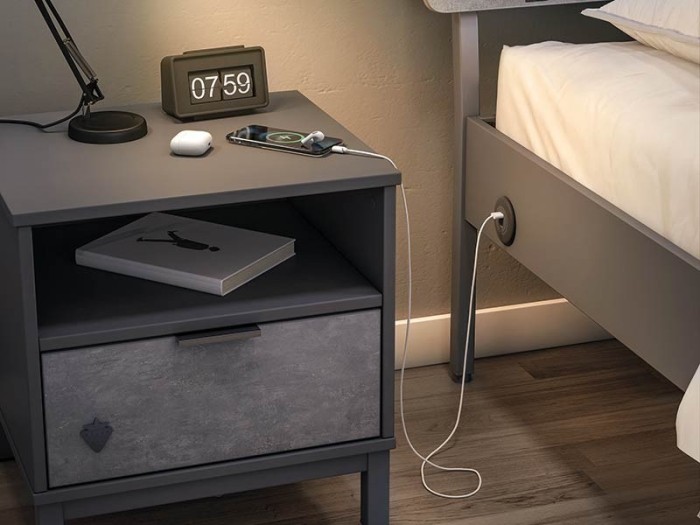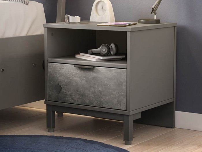Το κομοδίνο Space Gray είναι ένας κόσμος για εσάς με κάθε λεπτομέρεια. Το ράφι στο πάνω μέρος του κομοδίνου έχει σχεδιαστεί ως αξεσουάρ για να τοποθετείτε τα αγαπημένα σας αντικείμενα, ενώ το συρτάρι έχει σχεδιαστεί για να τοποθετείτε τα αρώματα και τα προσωπικά σας αντικείμενα. Με το ρετρό ασημί σχέδιο και το χρώμα του Sinai, το κομοδίνο Space Grey παρέχει αθόρυβη και ασφαλή χρήση χάρη στις ράγες αυτοφρεναρίσματος, ενώ προσφέρει έναν κόσμο γεμάτο με ειδικά υλικά.