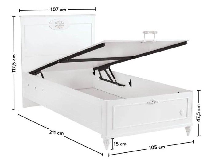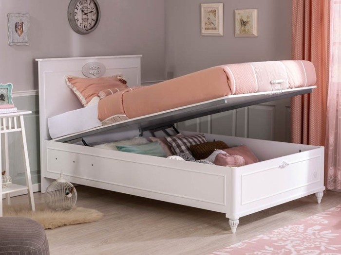 Παιδικό κρεβάτι μπαούλο της σειράς ROMANTICA, ένα κρεβάτι με αποθηκευτικό χώρο πραγματικά σας λύνει τα χέρια με τους μεγάλους του χώρους του σας δίνει την δυνατότητα και φυλάξετε από κάτω τόσο τα παιχνίδια του παιδιού όσο και ρούχα, παπλώματα, καλύμματα και διάφορα άλλα αντικείμενα που θα θέλατε να έχετε άμεση πρόσβαση καθημερινά και γρήγορα