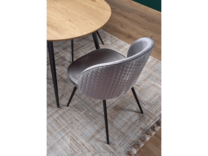 διαστάσεις: 120-160/80/74 cm, τραπέζι επεκτεινόμενο, υλικό: πλαστικοποιημένο MDF / ατσάλι με βαφή πούδρας, χρώμα: επάνω - χρυσαφένιο δρυς, πόδια - μαύρο