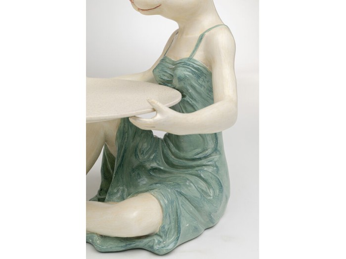 Μια ευφάνταστη δημιουργία που ισορροπεί ανάμεσα στο design και τη λειτουργικότητα, η φιγούρα Lady Rabbit φέρνει παιχνιδιάρικη κομψότητα και καλλιτεχνικό χαρακτήρα στον χώρο. Η ανθρωπόμορφη φιγούρα του κουνελιού, ντυμένη με φόρεμα σε απαλούς πράσινους τόνους, κρατά έναν στρογγυλό δίσκο, μετατρέποντας το αντικείμενο σε ένα ιδιαίτερο διακοσμητικό στοιχείο με πρακτική χρήση. Ιδανική για να φιλοξενήσει μικροαντικείμενα, κεριά ή κοσμήματα, λειτουργεί ως statement piece σε κονσόλες, τραπεζάκια ή μπουφέδες. Ένα αντικείμενο που τραβά αμέσως την προσοχή και προσθέτει μια δόση χιούμορ, φαντασίας και art χαρακτήρα σε μοντέρνους, eclectic ή creative interiors.