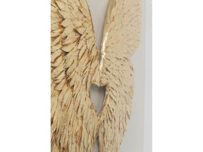 Φτερά χωρίς αγγέλους - Αγγελική διακόσμηση τοίχων . Αυτά τα γυαλιστερά χρυσά φτερά σε λευκό φόντο ακτινοβολούν μια δροσερή αισθητική γοητεία. Η τρισδιάστατη διακόσμηση τοίχων φτερωτών είναι ένα αγγελικό κομμάτι γλυπτικής χωρίς αγγέλους, αλλά θα ήταν εύκολο να τους φανταστεί κανείς εκεί. Ταυτόχρονα, τα πλούσια σε λεπτομέρεια φτερά είναι αρκετά όμορφα από μόνα τους. Υπάρχει κάτι μυστικιστικό για αυτό το συμμετρικό αντικείμενο το οποίο προσελκύει το μάτι.