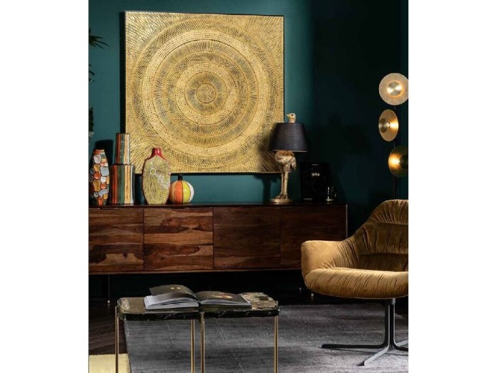 Μεγάλο, τετράγωνο διακοσμητικό τοίχου σε αντικέ χρυσό με λακαρισμένο μασίφ ξύλινο πλαίσιο πεύκου. Μια συναρπαστική, αφηρημένη εικόνα που έχει αυτό που χρειάζεται για να είναι ένα κεντρικό κομμάτι πάνω από τον καναπέ ή το κρεβάτι. Αυτή η λαμπερή εικόνα λέει για ανθρώπους που διατηρούν ζωντανή την αρχαία παράδοση της ξυλογλυπτικής με αυτό το μικρό έργο τέχνης.Για μια διακοσμητική εντυπωσιακή αντίθεση τοποθετήστε το σε έναν σκοτεινό τοίχο. Τα γραφικά σχέδια είναι λαξευμένα στο χέρι, έτσι ώστε κάθε κομμάτι είναι μοναδικό και ενδέχεται να εμφανίζει αποκλίσεις από την εικόνα.