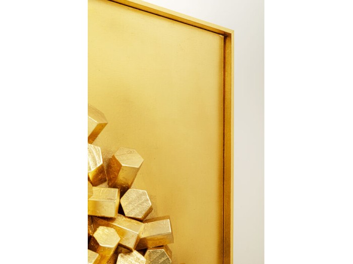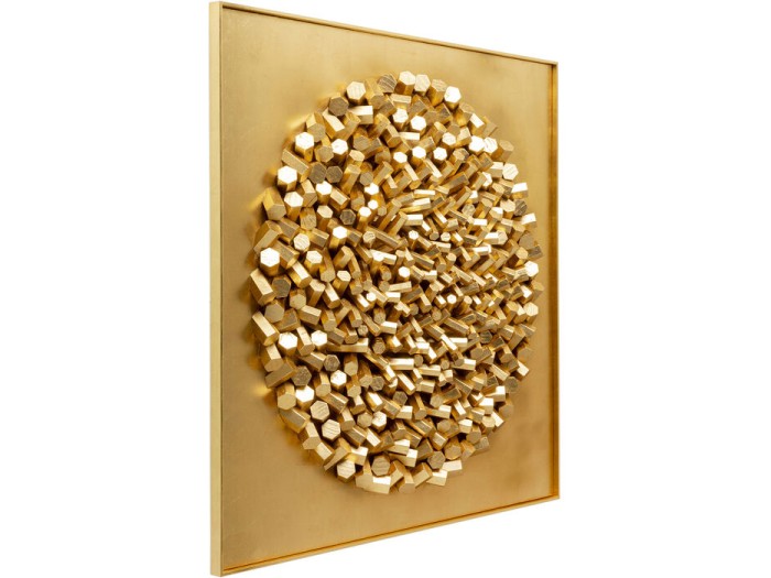 Αυτό το διακοσμητικό τοίχου θα δημιουργήσει φανταστικά αποτελέσματα σε κάθε δωμάτιο. Η τρισδιάστατη εικόνα Mikado είναι η κατάλληλη επιλογή για να διακοσμήσετε το σαλόνι σας ή οποιονδήποτε άλλο χώρο του σπιτιού σας.Χρυσόχρωμη διακόσμηση τοίχου XL σε κορνίζα, με διαστάσεις 120x10x120εκ.