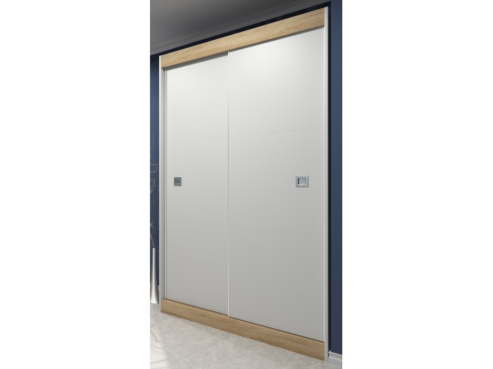 M1 - Ντουλάπα με συρόμενες πόρτες, τηλεσκοπική κρεμάστρα και 7 ράφια - 120x211x41