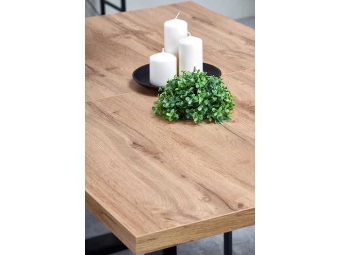 dimensions: 135÷185/85/74 cm, extension table, material: top - laminated chipboard, ABS plastic on edges, legs - powder coated steel, color: top - votan oak, legs - black