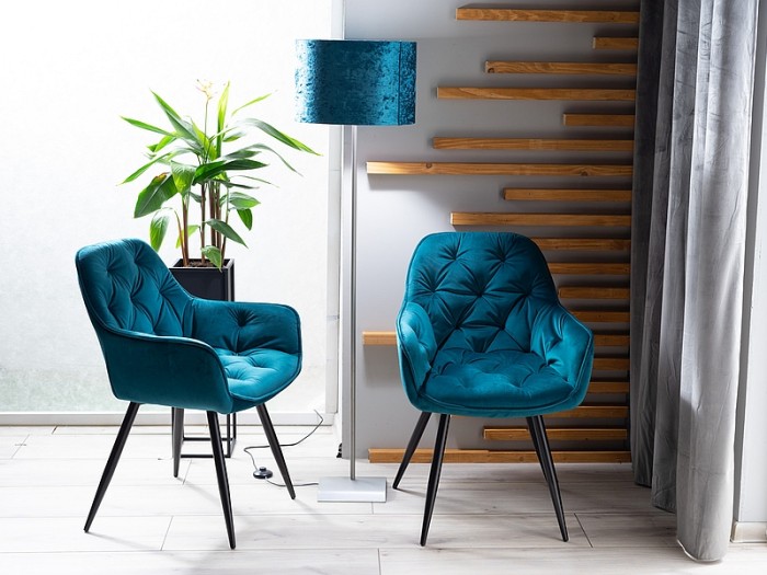 CHERRY VELVET CHAIR ΜΑΥΡΗ ΚΟΡΝΙΖΑ / TURQUOISE BLUVEL 85 DIOMMI CHERRYVCTU
