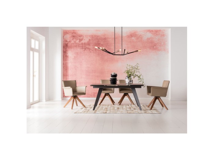 Τραπέζι: αυτό το μεγάλο τραπέζι τραπεζαρίας συνδυάζει τη λειτουργικότητα με τη μοντέρνα αισθητική. Πολύ πρακτική πτυσσόμενη λειτουργία με την οποία η επιφάνεια μπορεί να μεγεθυνθεί γρήγορα και εύκολα. Ελκυστική δομή επιφάνειας από κεραμικό 3 mm και γυαλί ασφαλείας 8 mm. Προσφέρει χώρο για 6-10 άτομα.