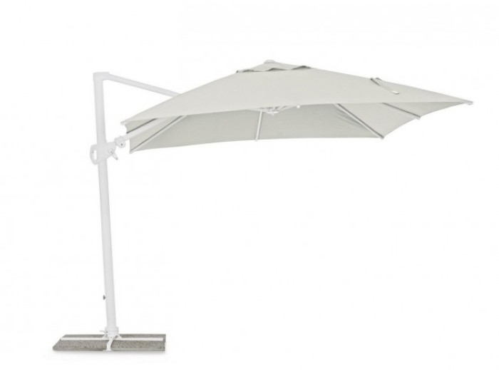 Ομπρέλα κήπου με σκελετό αλουμινίου. Ο πόλος είναι περιστρεφόμενος 360 μοίρες με πεντάλ. Έχει κατακόρυφη κλιση με λαβή 6 θέσεων. Συμπεριλαμβανεται κάλλυμα. Δεν συμπεριλαμβάνονται πλάκες τσιμέντου.- Ποιότητα: Αλουμίνιο